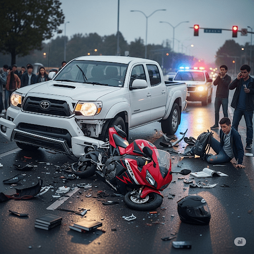 ในส่วนตัวผมมองว่าดูแล้วพอๆ กันทั้งคนเดินข้าม กระบะ จยย.