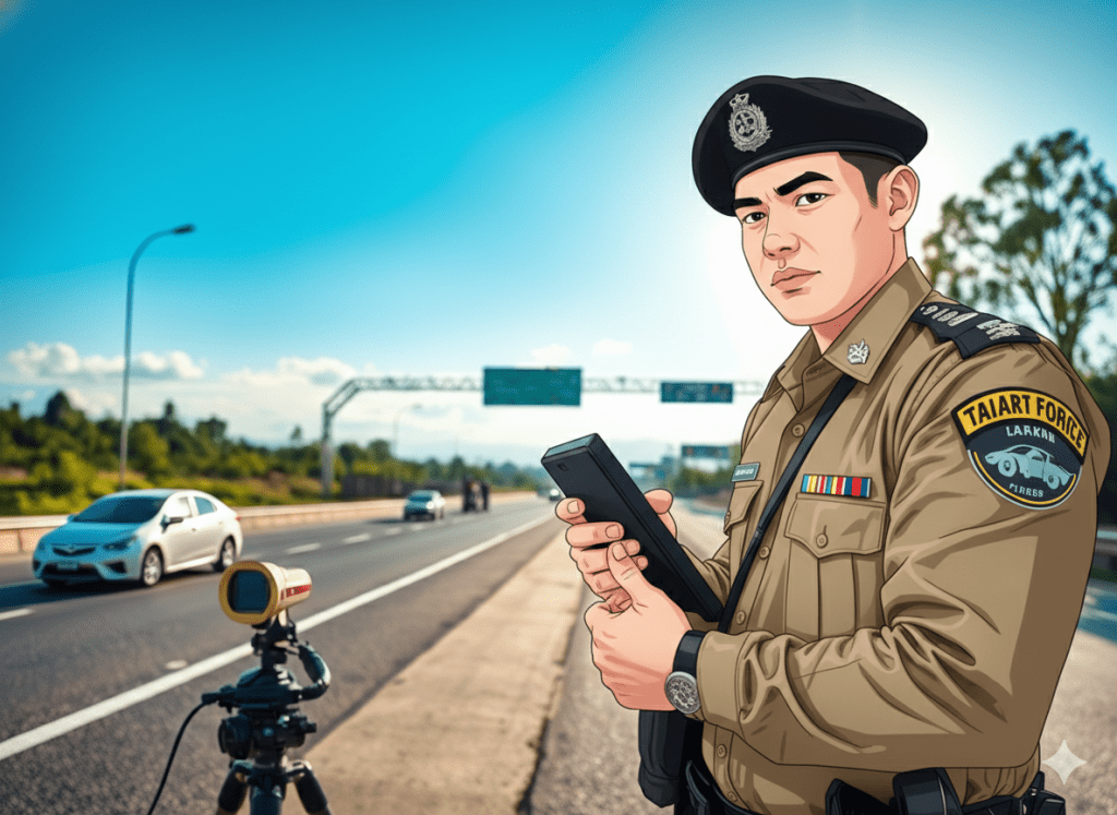 1.ในสมัยที่ผมรับราชการตำรวจตั้งแต่ปี 2530-2568ปี 2543 ขณะรับราชการอยู่ที่ตำรวจทางหลวง ได้เดินทางไปฝึกอบรมในโครงการของ กระทรวงคมนาคม ที่ประเทศ เดนมาร์กและสวีเดน ตำรวจทางหลวงสวีเดน ณ เมือง ลิงโชว์ปิง ได้ทำการฝึกอบรมภาคปฏิบัติโดยให้ไปจับความเร็วบนถนนในขณะที่ อุณหภูมิ -3 องศา ตำรวจสวีเดนได้ ใช้เครื่องตรวจจับความเร็วแบบเลเซอร์ มือถือ handheld แสดงว่าวิธีตรวจจับ ซึ่งในขณะนั้นประเทศไทยตำรวจทางหลวง ยังมีเครื่องตรวจจับความเร็วแบบใช้คลื่นเรดาร์เท่านั้น หลังจากเดินทางกลับจากประเทศสวีเดน ผมในฐานะสต๊าฟของผู้บังคับการตำรวจขณะนั้น จึงได้พยายามทำคำของบประมาณของตำรวจทางหลวงให้มีเครื่องตรวจจับความเร็วแบบที่ใช้ขึ้นเลเซอร์ เป็นแบบที่มีขาตั้ง สามารถตรวจจับได้แบบอัตโนมัติได้ มีราคาประมาณ เครื่องละหนึ่งล้านบาท ซึ่งในขณะนั้นก็ไม่มีหน่วยงานไหนในประเทศประเทศไทยนำมาใช้ พยายามของบประมาณอยู่สองปี โดยงบประมาณผ่านกรมทางหลวง จึงได้รับเครื่องตรวจจับความเร็วแบบที่ใช้คลื่นเลเซอร์มาใช้ในภารกิจตรวจจับความเร็วบนทางหลวง 20 ชุดจึงเป็นจุดเริ่มต้นของการตรวจจับความเร็ว ยานพาหนะ แบบใช้คลื่นเลเซอร์โดยอัตโนมัติ ตั้งแต่นั้นมา